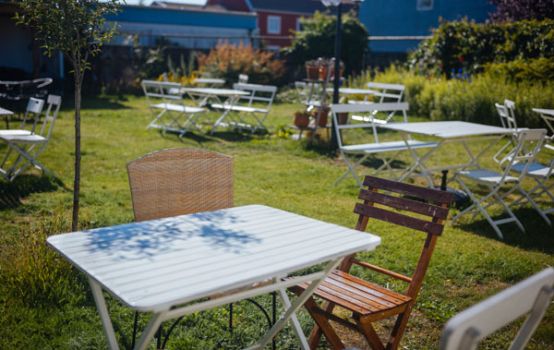 Här stressar vi inte i onödan. Men vi bjuder på god mat, gott fika och berömda bakelser i en bohemisk miljö, rekomenderad av White Guide.