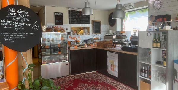 Det finns en liten butik inne på caféet. I butiken finns bland mycket annat Keramik av Malin Adner och Maria Malmströms, glas av Ulrika Bratt Ling. Samt hantverk från andra lokala hantverkare och böcker med Ölandsanknytning. Dessutom kan man sitta där och fika, som i en liten egen kupé, och betrakta, inte minst de underfundiga broderierna Ulla Björk broderat.